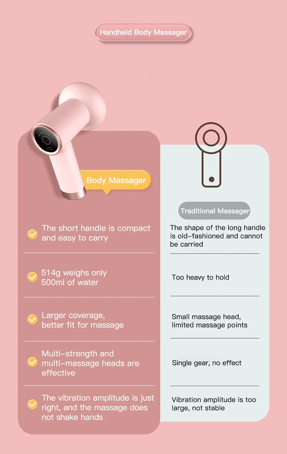 This electric massage hammer uses rhythmic deep tissue vibration to: